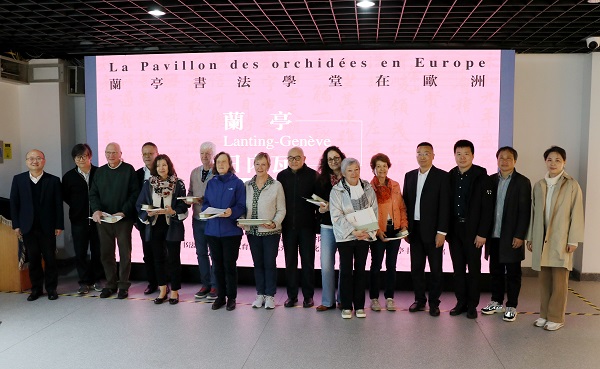 4月8日,“兰亭书法学堂在欧洲·兰亭—日内瓦2024书法展”在我校兰亭书法艺术学院展厅一楼开展。校党委书记崔凤军,校长赵阳,副校长胡云进,绍兴市外办(港澳办)副主任莫骄,瑞士日内瓦大学书法教师王飞,《书法》杂志原执行主编胡传海和副主编、编审杨勇,《美术报》首席记者蔡树农,江苏省国画院副院长刘毅,南京芥墨艺术馆馆长葛高路出席活动,来自瑞士“兰亭书法学堂”的师生代表和我校兰亭书法艺术学院师生代表100余人参加活动。开幕式由胡云进主持。