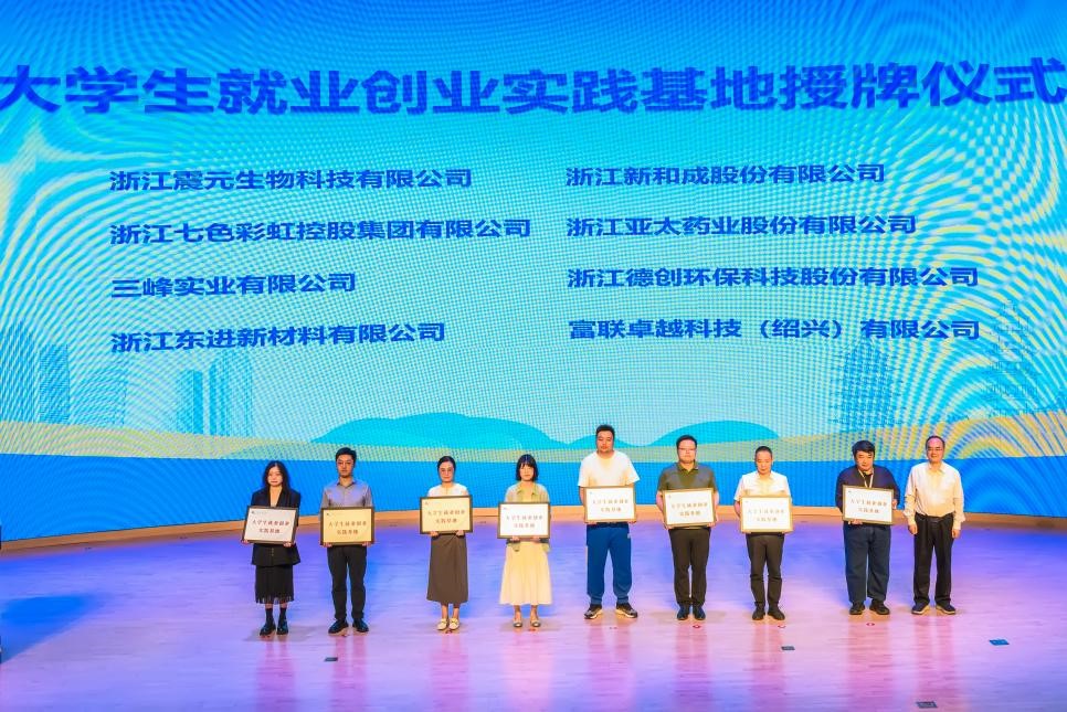 黄坚为浙江震元生物科技有限公司、浙江新和成股份有限公司等8家企业授牌“大学生就业创业实践基地”。