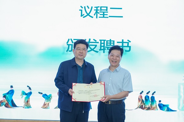 崔凤军为新任高等人文研究院执行副院长、秘书长及第二批兼职教授颁发聘书,绍兴市文史研究馆副馆长何俊杰受聘为高等人文研究院执行副院长、秘书长。校人文社科处处长诸凤娟主持受聘仪式。