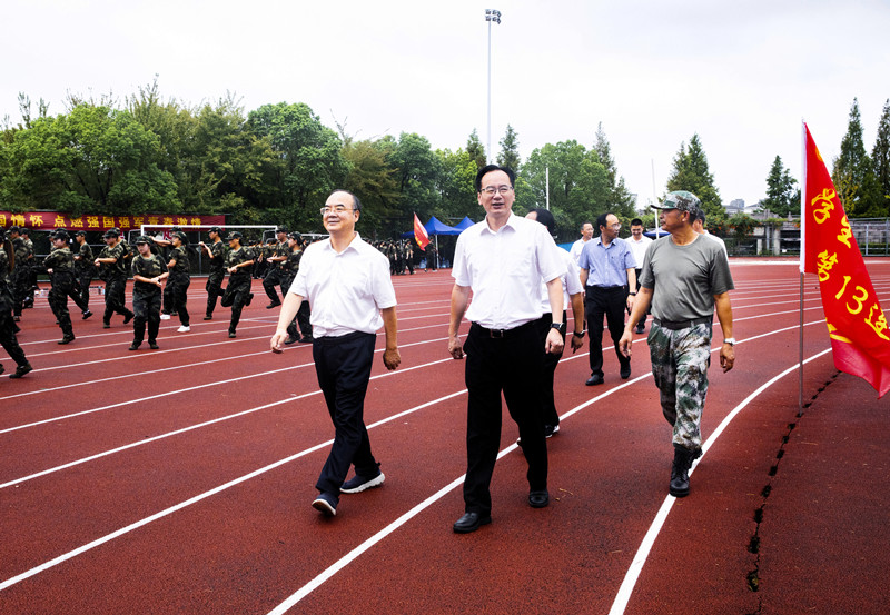 校党委副书记张宏、黄坚等赴元培学院检查指导新学期开学工作,看望慰问学院2024级学生军训参训学员和承训教官。