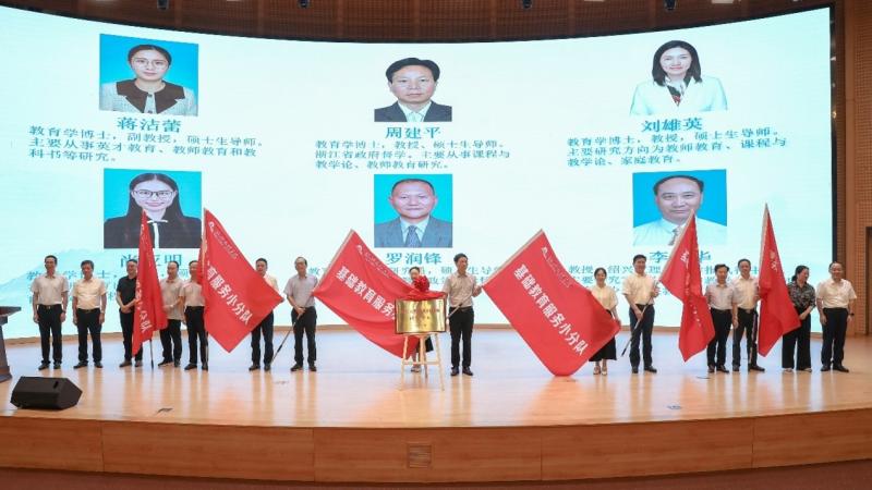绍兴市教育协同创新研究中心成立6支基础教育服务小分队,由区域内具有广泛影响力的教授、博士领衔,定点服务绍兴市内6个区县。赵阳、石剑晗为6支基础教育服务小分队授旗。