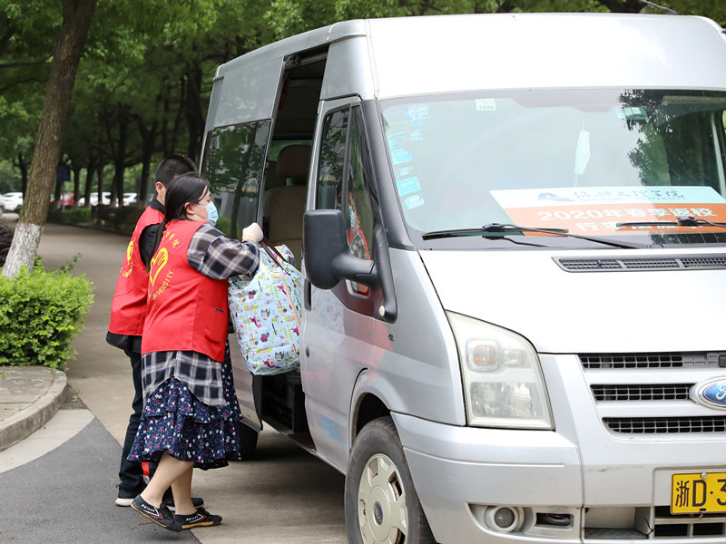 “同学你好,是我们文理学院的学生吗?请来这里。”“同学,请先保管好随身物品和重要证件。”“请大家排队扫码上车,注意保持距离,行李我们会帮你们搬上去的。”每天,来自各二级学院和机关党委的教职工志愿者戴上口罩,穿着红马甲,24小时轮流值岗,服务在萧山国际机场、绍兴高铁北站、绍兴火车站、客运中心、汽车西站、上虞东站等公共交通站点。