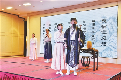 11月22日晚,全国大学生“阳明诵”大赛决赛在绍兴咸亨大酒店举行。大赛自今年6月启动,至9月初截止时,共收到来自北京、上海、江西、四川、贵州等9个省份18所高校的76件参赛作品。记者 侯 嫣