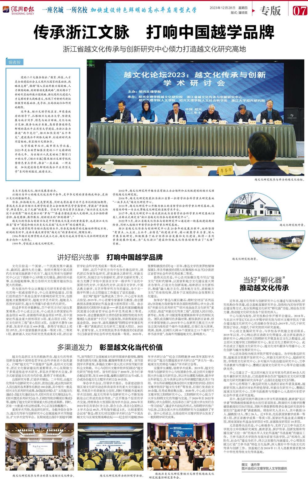 浙江省越文化传承与创新研究中心倾力打造越文化研究高地