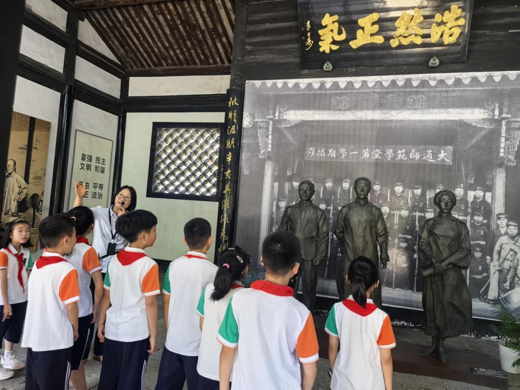 作为秋瑾策划反清起义的重要据点和被清兵包围逮捕地,大通学堂的青砖黛瓦间仍镌刻着革命的呐喊。在讲解员的带领下,同学们走进当年的寝室、器械室,透过泛黄的史料和复原的场景,重温秋瑾以“体操课”为掩护培养革命力量的峥嵘岁月。宣讲团成员以《体操课里的革命火种:秋瑾与大通学堂的1907》为题,讲述了秋瑾如何在此传播“驱除鞑虏,恢复中华”的革命思想,并秘密教授学生射击、马术,将学堂打造成武装起义的摇篮,成为当时浙江革命的大本营。秋瑾小学的少先队员们分享感悟时,稚嫩的话语中流露出对革命精神的深深敬仰。