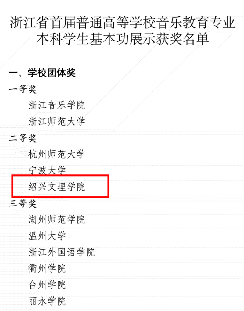 该活动为我省首次举办,旨在落实《教育部关于全面实施学校美育浸润行动的通知》要求,推进高校音乐教育专业、美术教育专业改革发展,建设满足基础教育急需的高素质专业化创新型音乐、美术教师队伍,促进高校之间的互学互鉴。活动通过教学展示(微课)、专业技能展示、审美和人文素养展示三大模块,全面检验参赛者的专业教学能力,奖项设置学校团体奖、个人全能奖、个人单项奖。我校高度重视本次赛事,备赛期间,组织师生持续打磨教案,并针对薄弱环节开展专项特训,最终取得优异成绩。具体获奖名单如下: