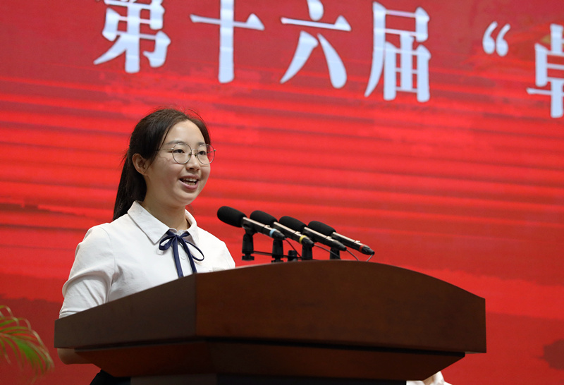 获奖代表董晶晶发表获奖感言。她表示,卓越奖学金是对自己努力的一种阶段性肯定,更是一种鼓舞,今后将以更加卓越的成绩回报韩院士和袁教授的深情厚望,回报社会各界的关心支持。