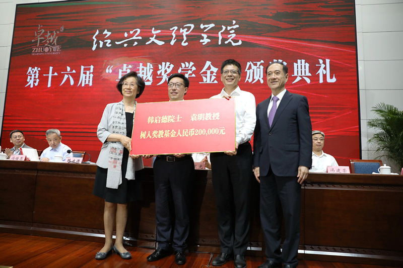孟夏之时,栀子花开,正是感恩的季节。6月9日下午,校第十六届“卓越奖学金”颁奖典礼暨“树人奖教基金”设立仪式在铁城科教馆报告厅隆重举行。“卓越奖学基金”倡设者、第十二届全国政协副主席、九三学社中央原主席、中国科协名誉主席、中国科学院院士韩启德和北京大学燕京学堂院长袁明教授出席颁奖典礼并为获奖学子颁奖。继“卓越奖学金”“卓越贡献奖”后,韩院士、袁教授夫妇再次捐资倡设“树人奖教基金”,主要用于奖励身正为范、潜心育人、深受学生喜爱的优秀教师。
