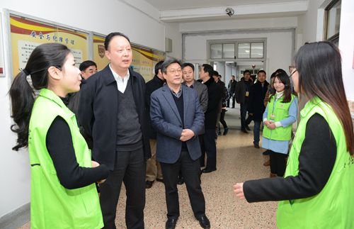 1月8日下午,省人大常委会党组书记、副主任茅临生率省人大常委会委员、省人大教科文卫委员会主任委员蒋泰维,省委教育工委副书记、省教育厅副厅长汪晓村,省教育厅高教处副处长祝鸿平等莅临我校,实地踏看了学生公寓“阳明书院”,与我校师生亲切座谈,传达宣讲党的十八届四中全会精神。校领导周达军、叶飞帆、唐和祥、钱水祥、邱卫东等陪同踏看、座谈。