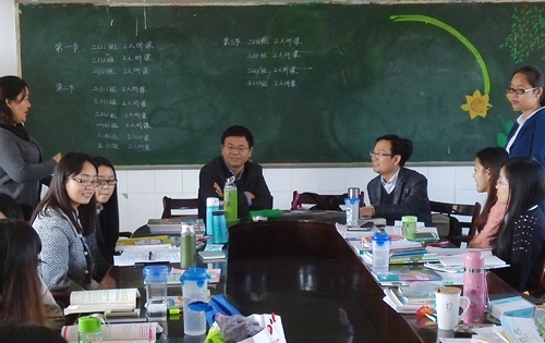 寿副校长一行拜访了实习学校领导,听取了关于实习生的实习工作及生活情况介绍,对实习学校多年来对我校实习工作的大力支持表示感谢。接着前往实习生集体备课教研的办公室,与实习生们进行了亲切交谈,多位实习生表示,“实习学校提供了良好的实习环境,指导老师也很关心,实习起来很安心”。寿副校长每到一所实习学校,都殷殷叮嘱师范实习生珍惜实习机会,向实习学校的指导教师虚心求教,与同事、学生融洽相处,同时鼓励教育实习的学生们努力提高教学技能,并祝愿他们实习愉快,为大学四年留下美好的回忆。