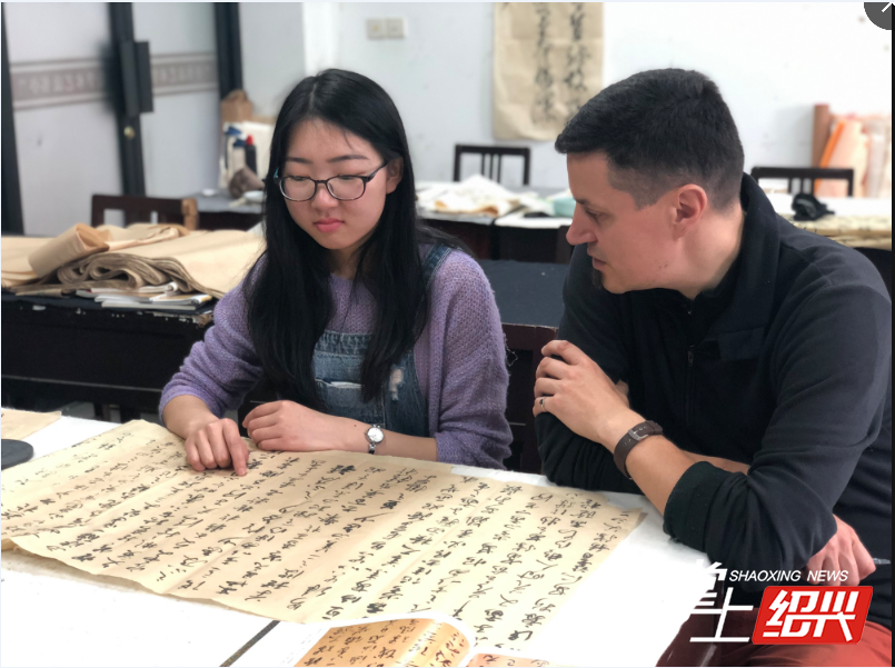 各美其美,美人之美,美美与共,天下大同。文化无界,书法艺术恰似一座桥梁,把绍兴和世界紧紧连接在一起。在兰亭书法艺术学院,除了像Roland一样的个人访问学者,还有许多外国团队,像瑞士的日内瓦大学和日本的创价大学等,会定期派遣书法研习团赴兰亭学习交流。这样,小小的一个学院,成为绍兴外国人最多见的地方。