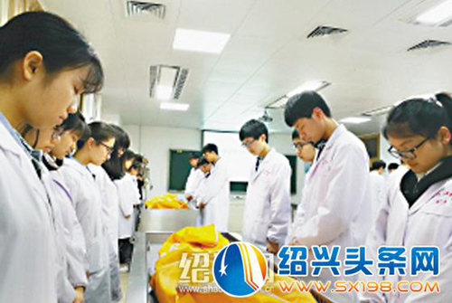 3月28日上午,医学院临床医学专业2016级同学的第一堂人体解剖课在医学实验中心人体解剖实验室开课。课前,刘文庆老师带领所有学生对“无语良师”致哀缅怀。3月29日,《绍兴晚报》、绍兴头条网以《感恩奉献,敬畏生命  医学院学生肃立追思“无语良师”》为题,对此予以图文报道。