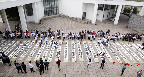4月6日,新华社以《浙江绍兴:中外师生绍兴泼墨书写国学经典》为题,报道我校师生和瑞士日内瓦大学书法研修团的学员们一起书写国学经典《千字文》。新华网、人民网、中国网、《绍兴日报》头版纷纷予以转发。原文如下: