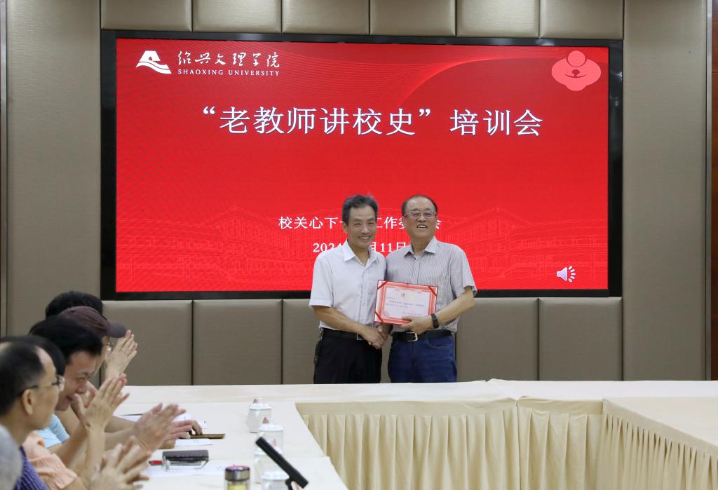 老领导许学刚进行校史宣讲培训。许学刚从校史文化发展的渊源篇、承源篇、汇源篇讲起,从开拓越学、爱国奉献、励志图强精神的文化因子展开,把学校发展与越地文化和时代发展紧密结合起来,并对校史发展重要时期的重大事件和重要师生代表等进行梳理,系统介绍了学校精神的萌发、发展和形成,为师生共讲校史提供了思路。
