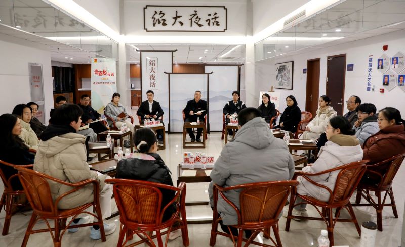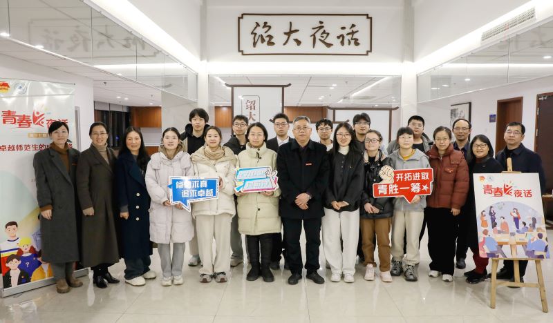 12月12日晚,“绍大夜话”第二十五期之“青春夜话”第十七期在行政楼三楼中庭举行。副校长柳国庆与12名2024级祖楠班学生代表围绕“卓越师范生的成长之路”主题,畅谈卓越师范生成长发展。鲁迅人文学院、外国语学院、教师教育学院等二级学院相关负责人,祖楠班班主任代表,教务处、学工部、校团委等相关职能部门负责人参加活动。