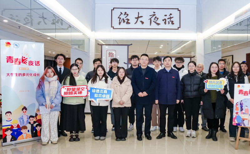 12月19日晚,“绍大夜话”第二十六期之“青春夜话”第十八期在行政楼三楼中庭举行。副校长陈均土与14名本硕学生代表围绕“大学生的多元化成长”面对面交流,共话青年成长与发展。校党委委员、宣传部部长宋浩成,办公室、学工部、研工部、计财处、团委等相关部门负责人参加活动。
