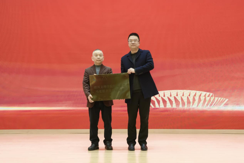 会上举行了马克思主义研究院成立仪式。为深入学习贯彻习近平总书记对新时代马克思主义理论研究和建设工程的重要指示精神,学校成立了马克思主义研究院,聘任副校长柳国庆教授为院长,马克思主义学院院长杜坤林教授为执行院长。柳国庆和冯建荣共同为马克思主义研究院揭牌。研究会聘请绍兴市文史研究馆馆长冯建荣、浙江大学公共管理学院和西湖大学通识教育中心教授戴文标校友等为学术顾问,绍兴市文史馆副馆长刘孟达、浙江警官职业技术学院教授金高品、浙江农业商贸职业学院马克思主义学院院长丁菁等8位校友为特聘研究员。特聘研究员代表刘孟达校友做了发言。