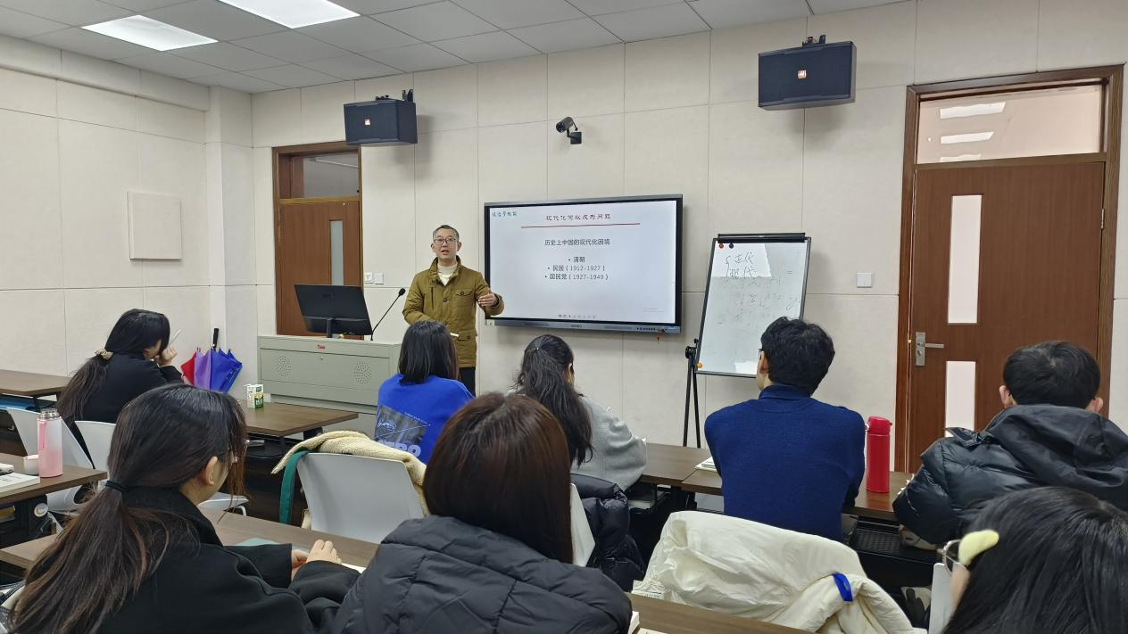 班瑞钧教授以“中国式现代化与中国政治发展”为主题开展了研究生《政治学》课程的教学工作。“现代化何以成为问题、近现代中国的现代化困境、中国式现代化与中国共产党的百年奋斗”,这种以探究式、研讨式教学方式,把党史、中国近代史、新中国史、改革开放史、社会主义发展史中的相关内容穿插,从理论与实践两个方面阐述了以中国共产党为中心的政治发展如何引领中国式现代化筚路蓝缕、踔厉前行。
