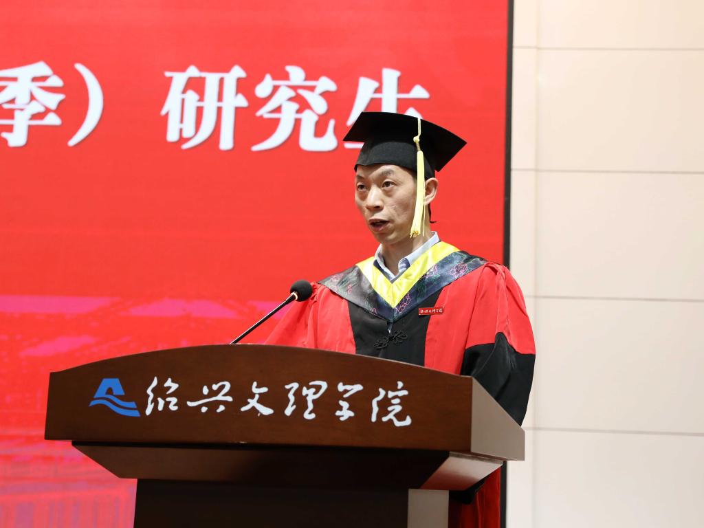 导师代表、土木工程学院梁超锋老师致辞,他寄语毕业生做一个有德之士、一个博学之士、一个雅趣之士。