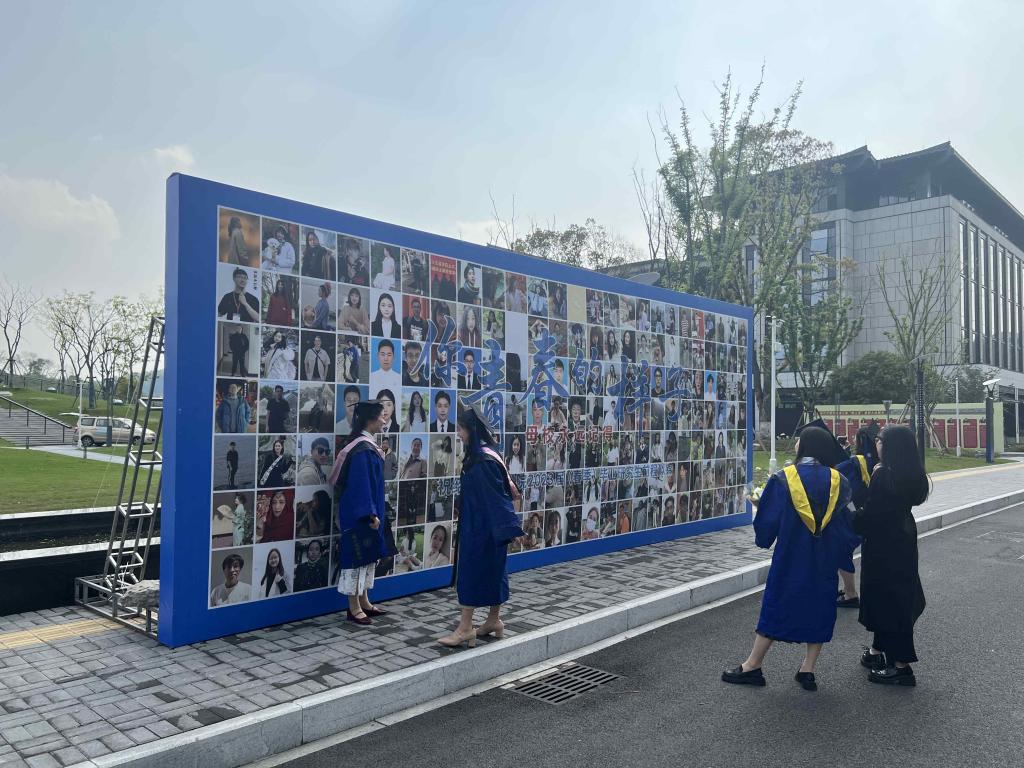 毕业典礼前,校长赵阳身着导师服,和春季毕业生们一一握手,拨穗正冠,合影留念。