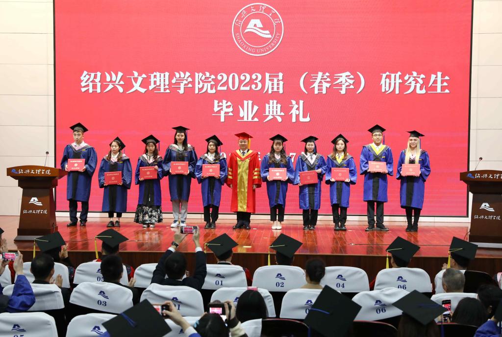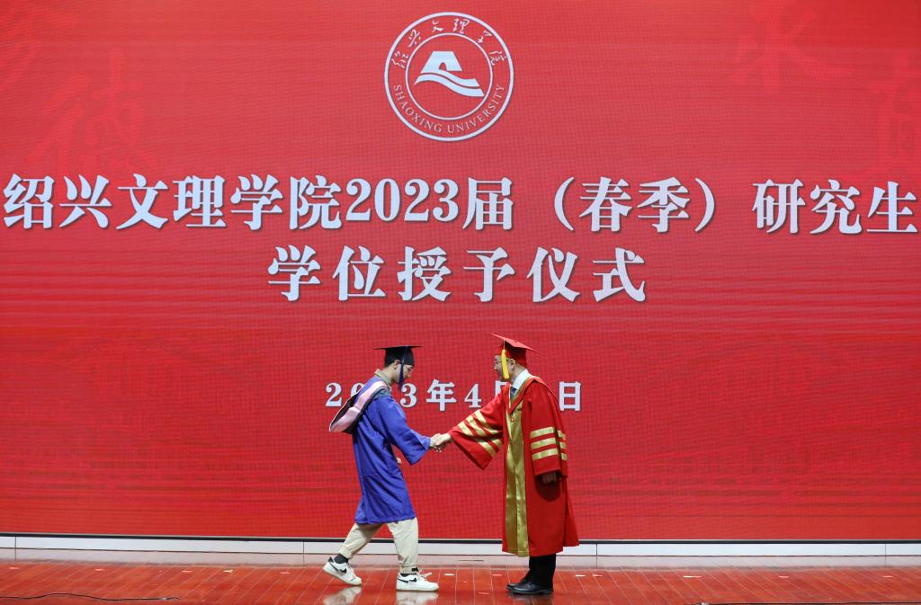 赵阳为2023届春季毕业研究生、留学研究生代表颁发毕业证书。