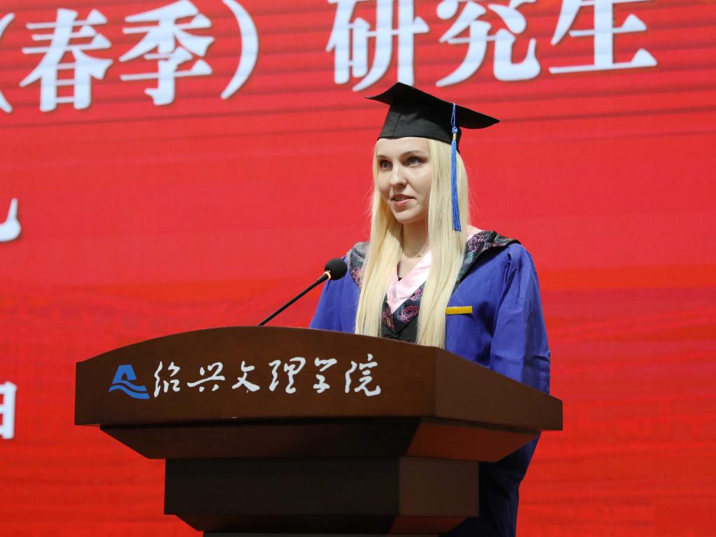 留学毕业研究生代表、来自波兰的吴玥发言。