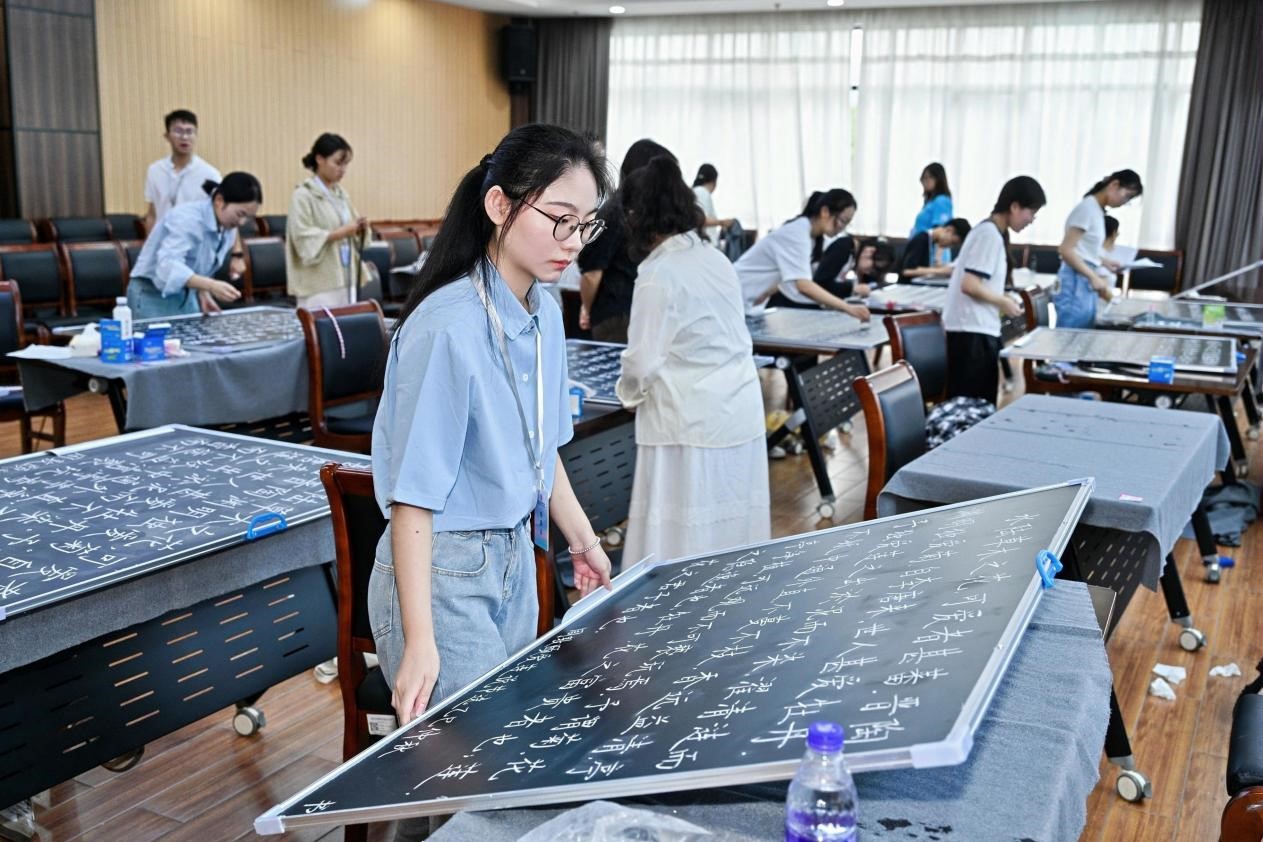 本次现场决赛设小学教师组、大中学教师组和师范学校学生组三个级别。经过初赛、复赛层层选拔,来自全国各地的180余名选手脱颖而出,现场角逐一等奖。赛场上,选手们以粉笔为戈、以黑板为疆,横平竖直间尽显遒劲风骨,轻重缓急中流淌汉字神韵。